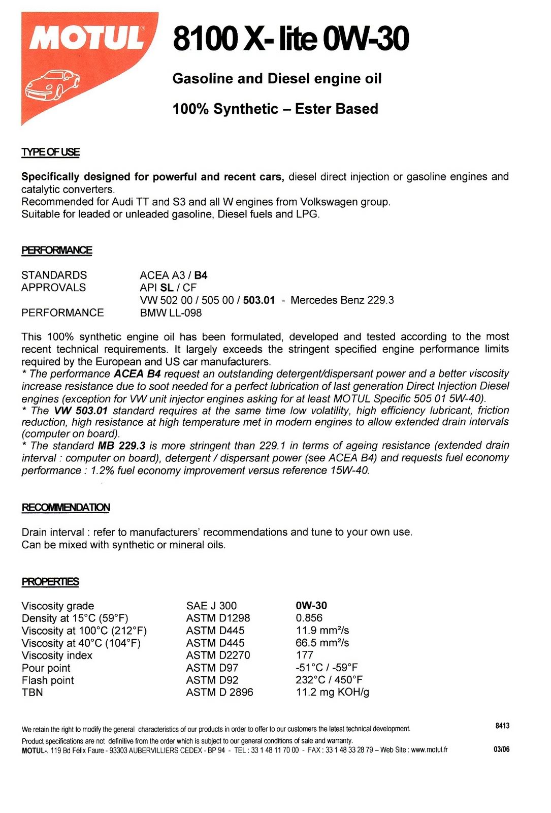 First the approval letter/spec sheet for the X-Lite 0W30.