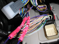 This shows the (+) YELLOW STARTER wire, marked with the RED Clip, at the Ignition Harness Plug.