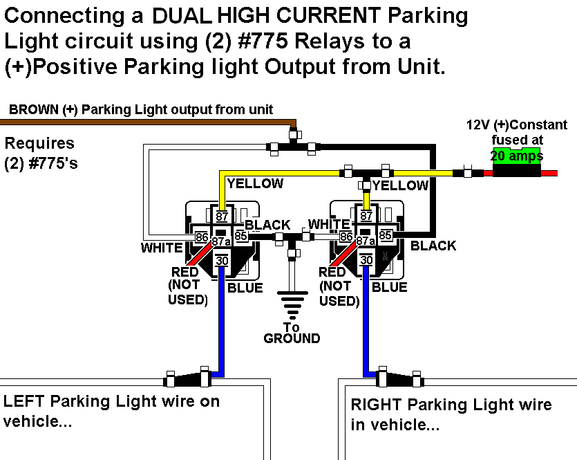 PARKING LIGHTS ( + ) BROWN (+) (Left) BROWN/WHITE (+) (Right) ENGINE BAY FUSE BOX IN RED 32 PIN PLUG, PINS F6 & C6 1_0_D_3179a1ca-7.bmp