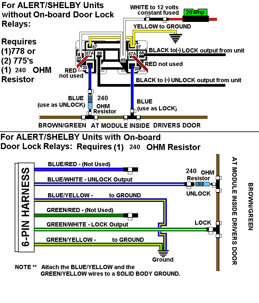 REQUIRES 240 OHM RESISTOR FOR UNLOCK SEE DIAGRAM