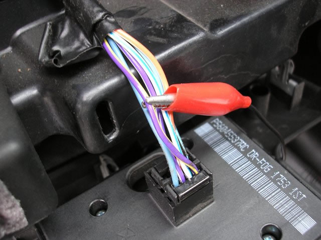 This picture shows the (-) PURPLE/YELLOW PARKING LIGHT wire, marked with the RED Clip in this picture.