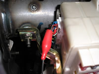 When installing an alarm system, you must use this (-) RED/GREEN Drivers Door Trigger wire, marked with the RED Clip, located in the WHITE Plug, low on the Left side of the Fuse Box.