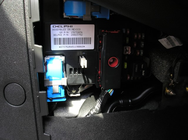 This picture shows the BCM or FUSEBOX Cover at the Front of the Passenger Center Console. This cover just snaps off. ALL of the wires needed for the Installation of a REMOTE STARTER, KEYLESS ENTRY or any other accessory will be wired in behind this panel.