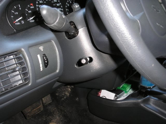 With both of the Steering Column Covers removed, you will see the IGNITION SWITCH Plug (BLACK) on the LEFT side of the column. In this IGNITION Plug, you will find a BLACK and a WHITE Plug that contain all of the IGNITION wires. In this picture you will s