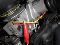 This picture shows the (3) PASSLOCK II wires (marked with the RED Clip) as they exit the IGNITION SWITCH TUMBLER. Of these (3) wires, the RED/WHITE wire is NOT USED!!. The YELLOW is the (+) PASSLOCK signal wire or the wire that shows 1 to 6 volts DC on a