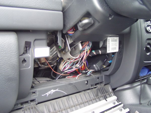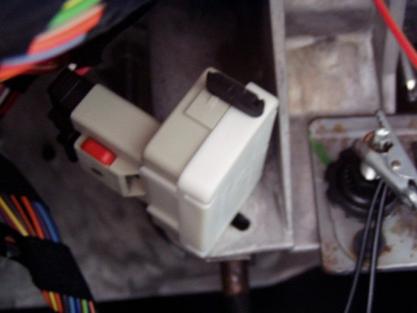 BACK OF FUSEBOX, IN BLACK PLUG, TOP LEFT CORNER