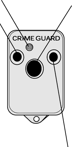 Большая центральная кнопка передатчика программируется для снятия/постановки системы на охрану на заводе. Две другие кнопки также выполняют различные функции, что подробно описано в Руководстве пользователя. Для снятия/постановки системы на охрану может быть запрограммирована любая из этих трех кнопок. При запоминании кода кнопки снятия/постановки на охрану коды других кнопок запоминаются автоматически в следующем порядке: