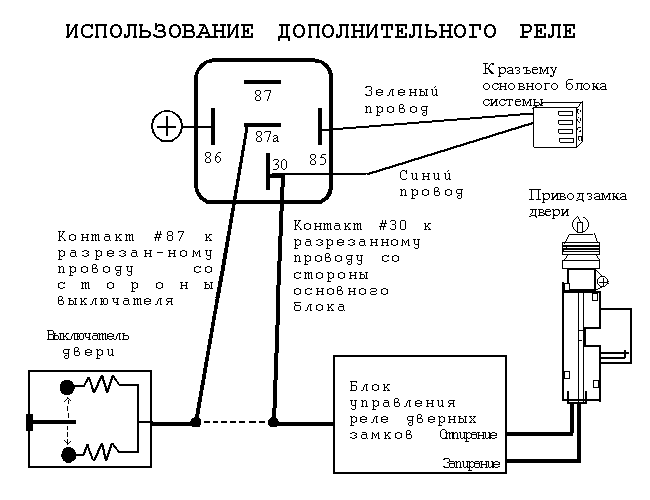 Тип подсоединения будет зависеть от типа электроприводов замков дверей автомобиля.