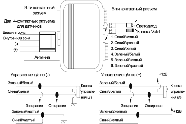 *** - 2-х импульсное отпирание центрального замка. Для большинства автомобилей не требуется.