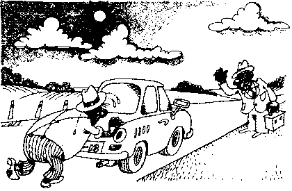 Как ее определить? Лучше всего с помощью счета. Приметьте какой-нибудь неподвижный объект впереди вблизи дороги. Как только задний бампер автомобиля, движущегося впереди, минует этот объект, начинайте считать: одна тысяча один, одна тысяча два. Если вы произнесли «одна тысяча два» до того, как проехали этот объект, ваша дистанция недостаточна, ее необходимо увеличить.