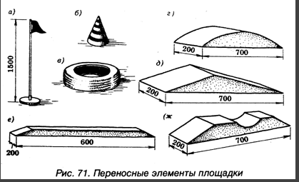 различные конусы из жести или пластмассы и другие легкоопрокидывающиеся