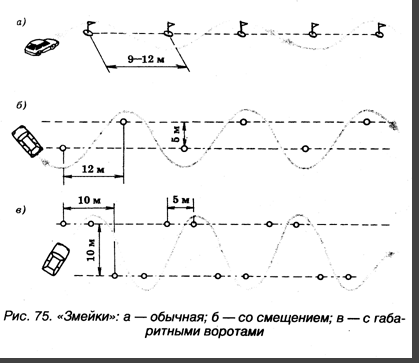 “Змейки” (рис. 75) полезно отрабатывать также передним и задним ходом с