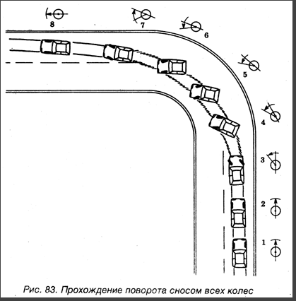 увеличив радиус поворота. На рис. 87, а показаны левый