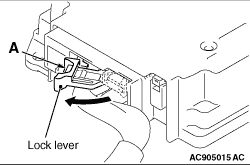 the lock lever to the direction of the arrow to release the lock lever, and disconnect the C-126 SRS-ECU