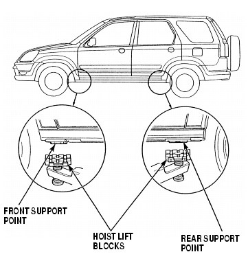 - Position the hoist lift blocks, or safety stands, under the vehicle's front support points and rear support points.