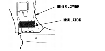 Remove the wheelhouse upper member extension, and cut and pry off the front pillar outer panel, and if necessary replace the front fender bracket. Check the front pillar lower stiffener position, and check for damage. Replace it if necessary. When replacing the front pillar lower stiffener, remove the front pillar separator, and glue the insulator at the separator mounted position. If necessary, replace the front fender bracket.