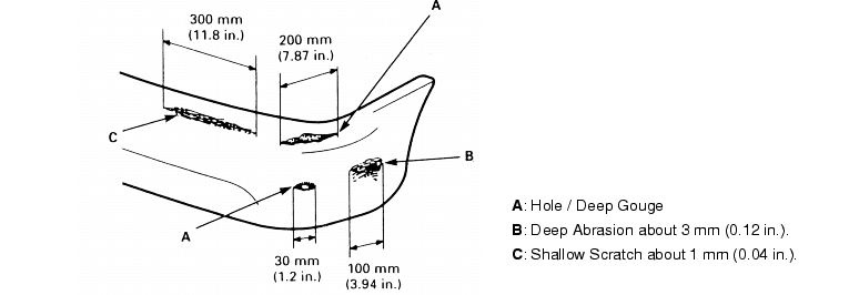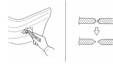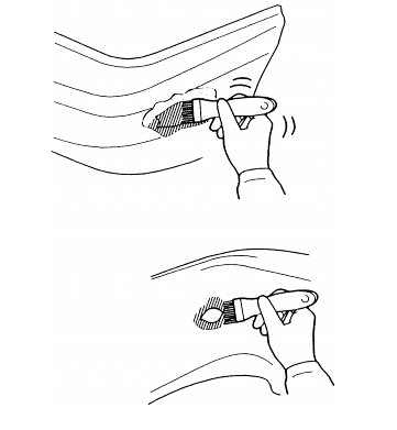 The following shows refinishing methods to various types of paint damage or defects. Be careful not to deform and damage the parts when force drying.