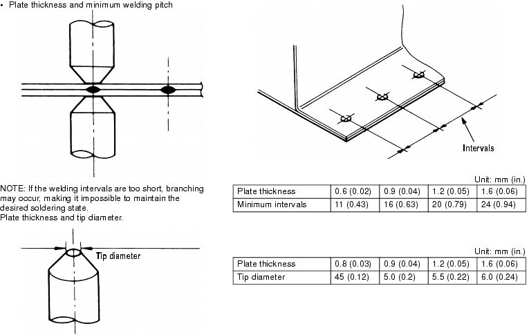 When performing spot welding, make sure that you conform to the following conditions: use the correct current, conductivity time, welding pressure, holding time and shutdown time recommended for the spot welder.
