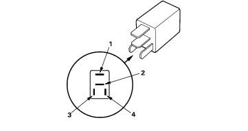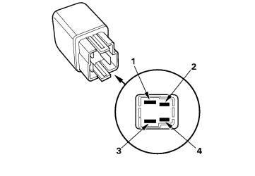 There should be continuity between the No. 1 and No. 2 terminals when power and ground are connected to the No. 3 and No. 4 terminals. There should be no continuity between the No. 1 and No. 2 terminals when power is disconnected.