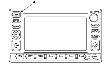 DVD-ROM Replacement22B-25 Turn the ignition switch ON (II). Push the open key (A) of the AVN unit, then open the front panel. Push the DVD EJECT switch (B), then remove the DVD-ROM. Insert the new DVD-ROM. Close the front panel.