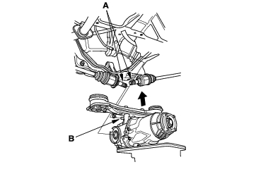 - Install the rear differential mount assembly A (A) to the rear differential assembly (B).