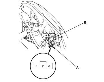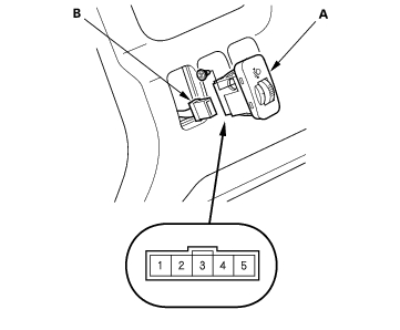 - Disconnect the 4P connector (A) from the brake pedal position switch (B).