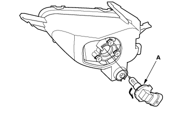 - Turn the bulb socket (A) 45° counterclockwise to remove the bulb.
