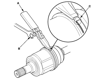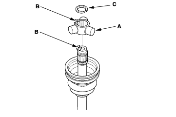 - Fit the circlip (C) into the driveshaft groove. Always rotate the circlip in its groove to make sure it is fully seated.