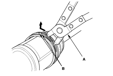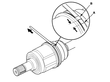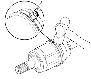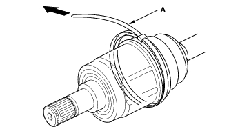 - Fit the boot ends onto the driveshaft and the inboard joint, then install the new double loop band (A) onto the boot.