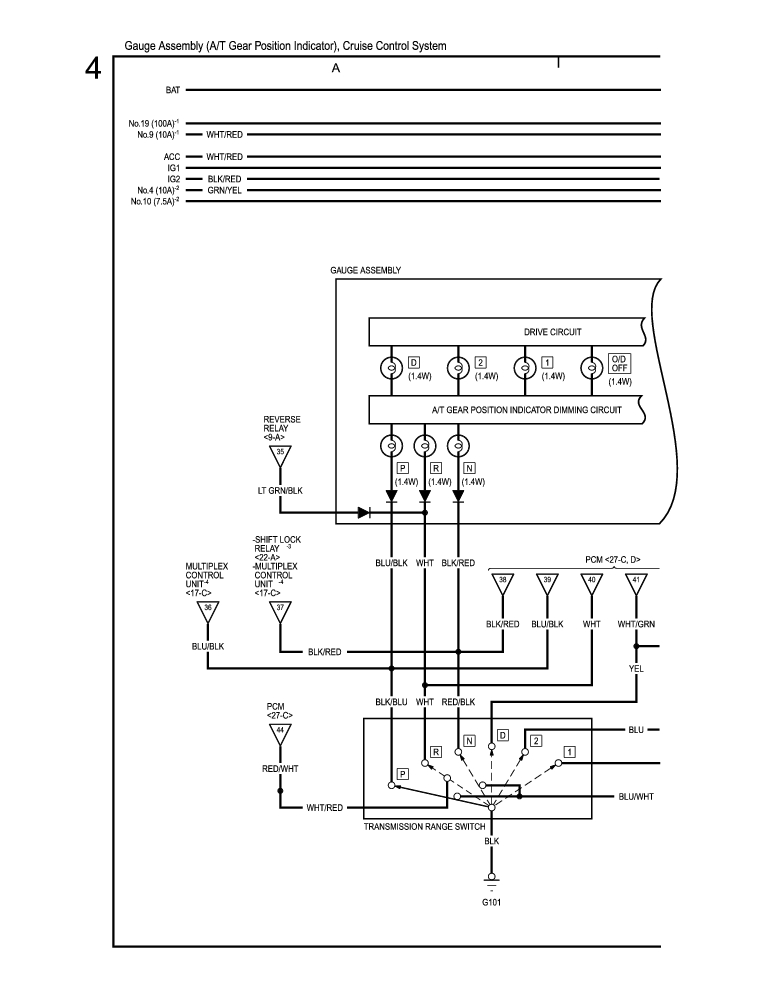 Gauge Assembly (A/T Gear Position Indicator), Cruise Control System (cont'd) 78-15