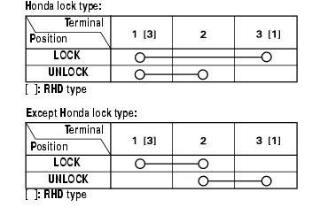 - There should be continuity between the No. 2 and No. 3 terminals when the door key cylinder switch is LOCK position.