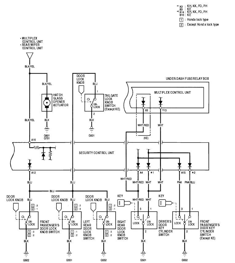- There should be no continuity with the tailgate knob switch is LOCK.