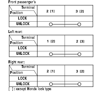 - There should be continuity between the No. 1 and No. 4 terminals when the door lock knob switch is UNLOCK position.
