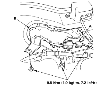 - Disconnect the 4P connector (A) from the wiper motor (B).