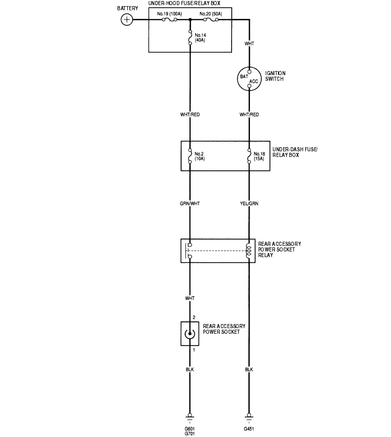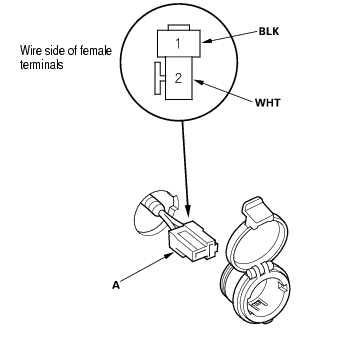 - Turn the ignition switch to ACC (I), and check for voltage between the No. 1 and No. 2 terminals.