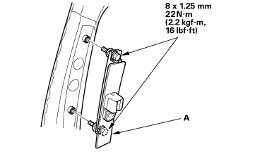 - Make sure that the seat belt does not lock when the retractor (A) is leaned slowly up to 15° from the mounted position. The seat belt should lock when the retractor is leaned over 40°. Do not attempt to disassemble the retractor.