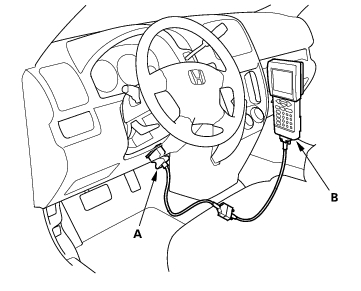 - Disconnect the Honda PGM tester (A) from the DLC (B).