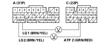 The PCM controls to shift gears the shift solenoid valves A, B, C, and E, and the A/T clutch pressure control solenoid valves A, B, and C, while receiving input signals from various sensors and switches located throughout the vehicle. The shift solenoid valves shift the positions of the shift valves to switch the port leading hydraulic pressure to the clutch. The A/T clutch pressure control solenoid valves A, B, and C regulate their respective pressure, and pressurize to the clutches to engage it and its corresponding gear. The pressures of the A/T clutch pressure control solenoid valves also apply to the shift valves to switch the port.