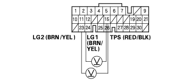 - If you cannot get to the wire side of the connector or the wire side is sealed, disconnect the connector and use the tester probe to probe the connectors from the terminal side. Do not force the probe into the connector.