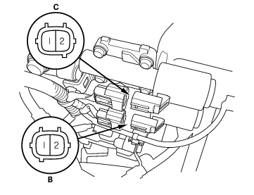- Connect the connectors to the mainshaft speed sensor (C) and countershaft speed sensor (D).