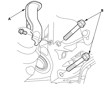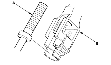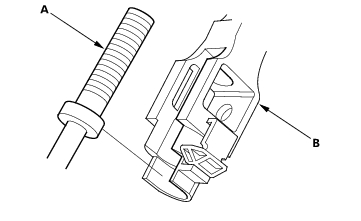 - Separate the shift cable end (A) from the shift cable holder (B).