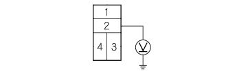 - Measure voltage between the No. 2 terminal of the radiator fan switch 2P connector and body ground.