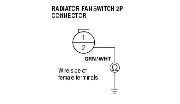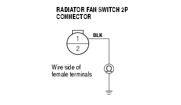 - Turn the ignition switch OFF, and check for continuity between the No. 1 terminal of the radiator fan switch 2P connector and body ground.