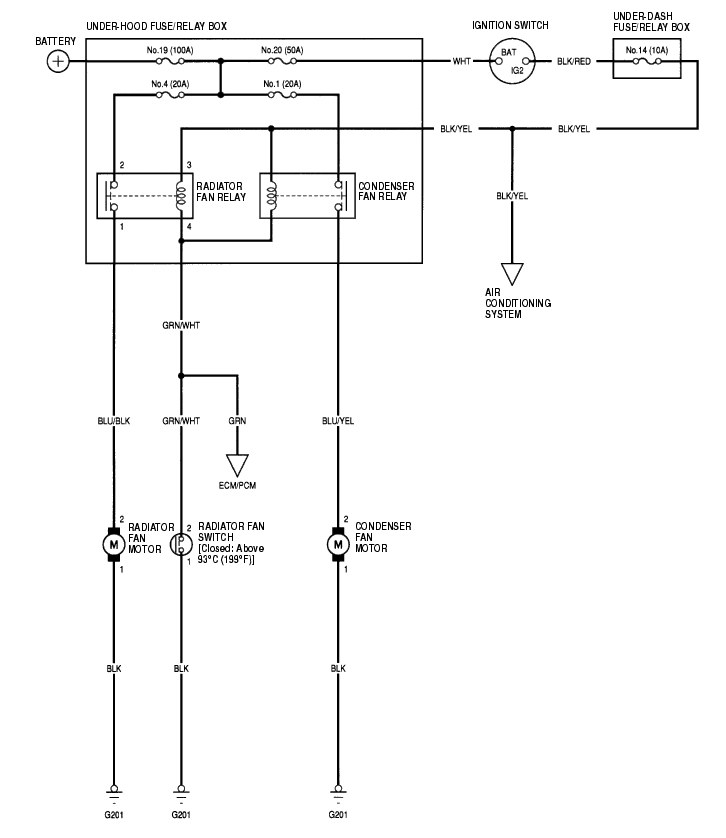 - Check the No. 4 (20A) fuse in the under-hood fuse/relay box, and the No. 14 (10A) fuse in the under-dash fuse/relay box.