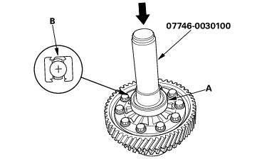 - NOTE: Turn the seal (B) part of the bearing to the outside of differential, and install it.