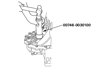 - Install the new oil seal in the transmission housing with the special tools.