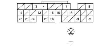- Measure the voltage between the No. 18 terminal of ECM/PCM connector E (31P) and body ground with the ECM/PCM connectors connected.