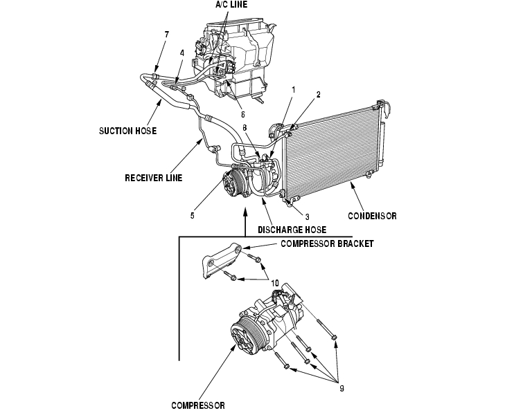 Do not mix refrigerants CFC-12 (R-12) and HFC-134a (R-134a). They are not compatible. Use only the recommended polyalkyleneglycol (PAG) refrigerant oil (KEIHIN SP-10) designed for the R-134a compressor. Intermixing the recommended (PAG) refrigerant oil with any other refrigerant oil will result in compressor failure. All A/C system parts (compressor, discharge line, suction line, evaporator, condenser, receiver/dryer, expansion valve,