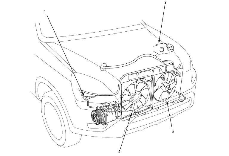 - Measure the voltage between the No. 2 terminal of the condenser fan relay 4P socket and body ground.