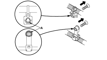 Secure wires and wire harnesses to the frame with their respective wire ties at the designated locations. Remove clips carefully; don't damage their locks (A).